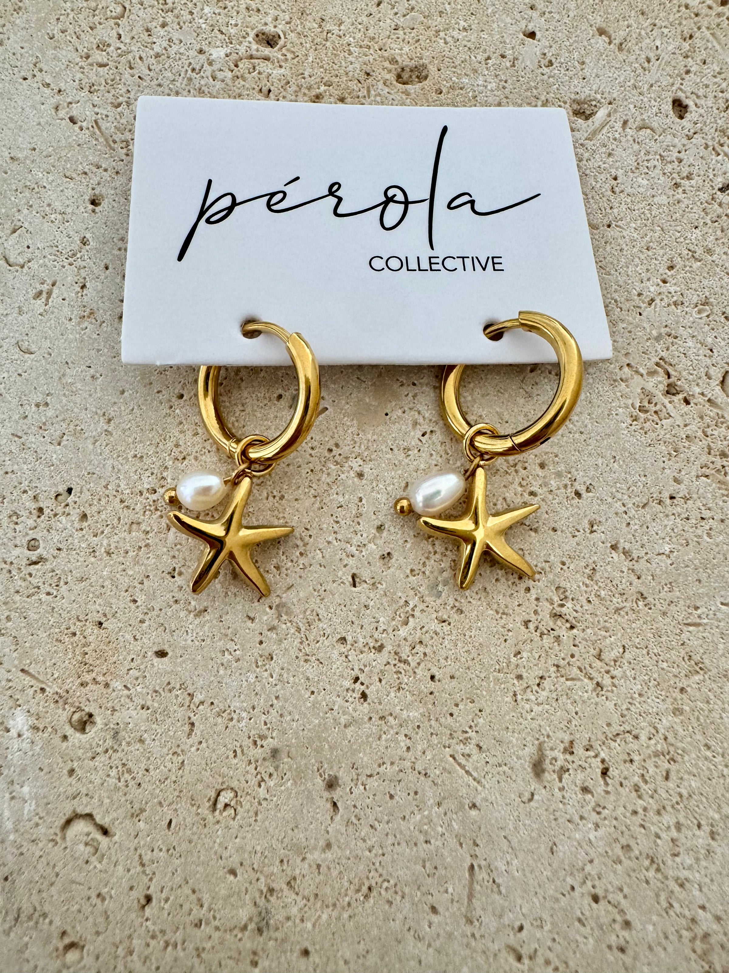 Our golden Kai earrings are the perfect summer accessory. Adding that coastal touch to any outfit with starfish designs and delicate freshwater pearls. These earrings are designed to be worn in multiple ways. Keep it classic with the golden hoops or add the removable starfish charms and pearls for a personalised touch. Pair them with our Coco or Loco earrings to complete your look.