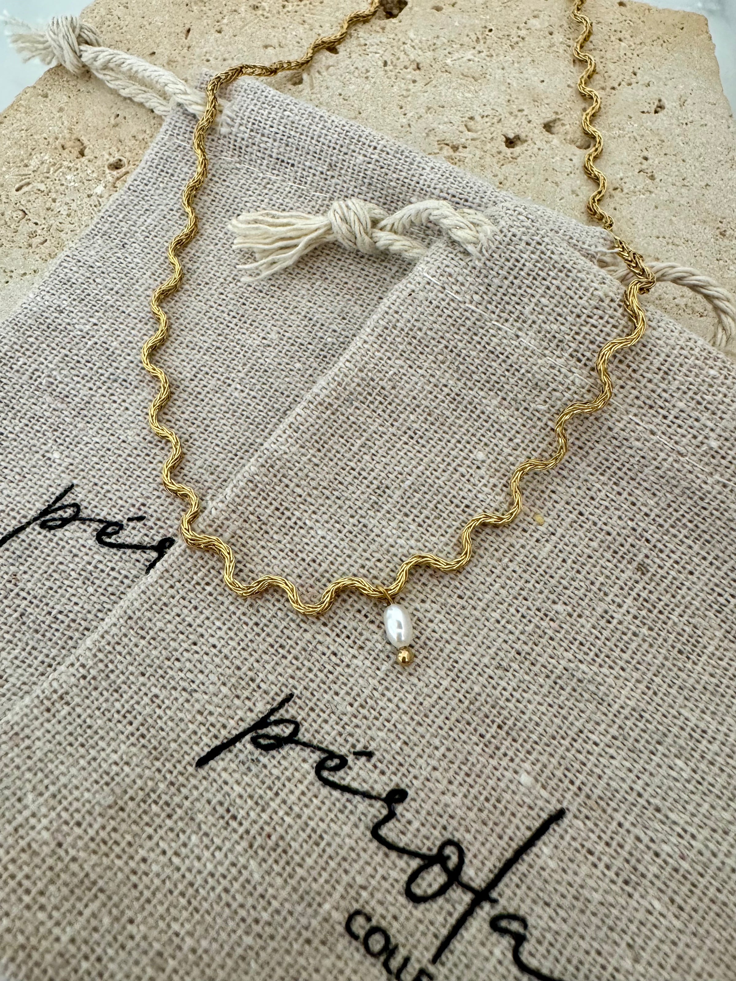Add a modern edge to your everyday look with our Oceane necklace. Crafted from durable stainless steel and featuring a delicate freshwater pearl pendant—each one unique in shape and character, making every piece one of a kind. The fluid curves of the chain catch the light beautifully, adding a modern element to a timeless piece. Pair it with our matching Oceane bracelet to complete your look.